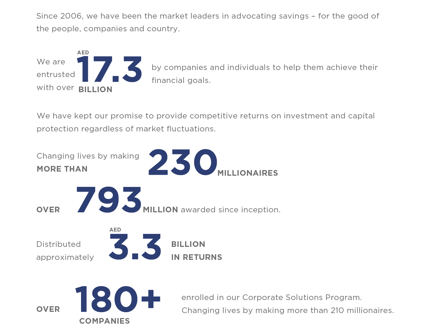 In addition to investing your End of Service with National Bonds Mudarabah option, we offer you an array of saving and investment products for your voluntary contribution. The underlying investment strategy and structure remains the same, with competitive returns being offered on various savings plans.